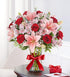 The key to an unforgettable Valentine’s. Our timeless red and pink bouquet is designed in a clear vase tied with red satin ribbon to help unlock all those feelings in your heart