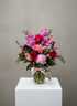 Bold, captivating, and deeply expressive, Crimson Devotion is designed to make a statement from the moment it’s seen. Featuring velvety red roses as the focal point, this arrangement is accented with lush pink peonies, textured stock, and vibrant seasonal blooms, all framed by fresh eucalyptus greenery.