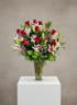 Dramatic, timeless, and unmistakably romantic, Grand Passion Elegance is a luxurious floral arrangement designed to leave a lasting impression. Featuring an abundant display of rich red roses and stunning white lilies, this arrangement is accented with delicate filler blooms and layered with lush, vibrant greenery for depth and movement.